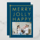 Merry Jolly Happy Blue Family Photo Christmas Gold