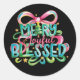 Merry Joyful Blessed Colourful Brushstroke Xmas Bo Classic Round Sticker