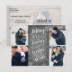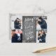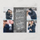 This modern and chic holiday photo postcard doubles as a save the date announcement for the newly engaged couple. The front features 4 of your photos accented by hand drawn snowflakes and hand lettered typography that says "Merry Kisses and Warm Holiday Wishes From The Soon To Be Mr. and Mrs." on a chalkboard background. The back features a full photo with a transparent white overlay with your save the date details, address and custom message.