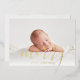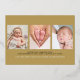 An elegant real gold foil photo holiday birth announcement card featuring your special favourite 4 photos, baby's name and birth stats, and your holiday message set in classic modern typography. Designed by Thisisnotme©