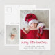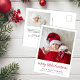 Holiday season birth announcement postcard featuring your newborn's photo, "merry little christmas" in a stylish red script and their name and birth stats. On the back, add an additional photo and your personalised seasonal message to family and friends.