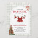 Merry Little Girl Gingham Christmas Baby Shower Invitation