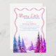 "Merry little bridal shower" invitation, perfect for the holiday season. Featuring a rustic Christmas theme. Adorned with vibrant watercolor trees in purple and pink. this card sets a perfect tone for a winter bridal shower. Ideal for Christmas-themed or rustic winter wonderland bridal events. Customise the text to fit your event details and make it all yours.