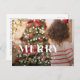 The Merry Magic Christmas Photo Postcard is an enchanting way to share the festive spirit with your loved ones. This photo card features a captivating full-page photo, adorned with the words "Merry Christmas" in a magical mix of fonts. The word "Merry" takes centre stage in a bold serif font, emphasizing its joyful significance, while "Christmas" is delicately presented in a handwritten script, adding a touch of warmth and charm.