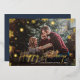 Our simple and festive holiday photo card features your favourite full bleed horizontal or landscape orientated photo with an overlay border of gold foil snowflakes. "Happy Holidays" appears in gold foil hand lettered typography with your names and the year beneath.