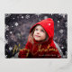 Our simple and festive holiday photo card features your favourite full bleed horizontal or landscape orientated photo with an overlay border of white snowflakes. "Merry Christmas" appears in gold foil hand lettered typography with your names and the year beneath. Customise the solid red back with three additional square photos in a collage layout.