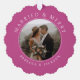 Merry Married Bold Pink Newlyweds Wedding Photo Ornament Card