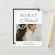 Merry Married Modern Blue Script Photo Christmas Holiday Postcard