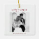 Commemorate your first holiday season as a married couple with this elegant “Merry & Married” Christmas ornament. Designed to feature your wedding photo and family name, this customisable keepsake is perfect for newlyweds decorating their first tree together. A beautiful holiday gift, memory ornament, or heirloom decoration for years to come. Personalise the name, year, and picture to make it uniquely yours.