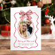 Merry Married Red Wavy Frame Bow Photo Christmas Holiday Card