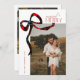 Merry & Married Script Photo Christmas Tartan Bow Holiday Card