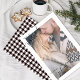 Celebrate your first Christmas as newlyweds with this beautifully designed 'Merry & Married' card, featuring an intimate photo layout and a stylish black and white buffalo check plaid backer. Perfect for sending warm holiday wishes to family and friends, this card captures the elegance of a special moment and the joy of your new journey together. Ideal for winter weddings, holiday announcements, or thank you notes, this card is as versatile as it is timeless.