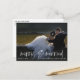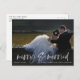 This wedding photo holiday postcard. The front of the card is designed to showcase your favourite horizontal orientation photo, with the words 'merry & married' at the bottom in a cool, on trend modern watercolor brush script overlay typography, and your names, wedding date and location at the bottom. The back of the card allows you to type in a personal holiday message of thanks, and features your return address. This is a template design, and is very easy to customise to suit your needs. CREATOR'S NOTE: The "vellum overlay" on this product is a digital effect." Contact designer for matching products. Copyright Anastasia Surridge for Anastasia Designs, all rights reserved.