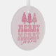 Merry Merry Christmas - Pink Holiday Design Glass Tree Decoration