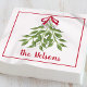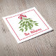 Merry Mistletoe with white berries tied up in a red ribbon nestled atop a doorway awaiting those to stand underneath. A lovely and simple design that depicts a simple and classic Christmas element. A wonderful design for any holiday occasion.