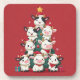Cute and playful illustration of a Christmas tree made entirely of small cartoon baby calves (kawaii baby cow characters). Each calf is arranged in the shape of a tree, stacked vertically, with different poses — smiling, sitting, peeking, and holding Christmas ornaments. The calves wear small Santa hats, scarves, or Christmas accessories. Add colorful Christmas lights wrapped around the calves, shiny ornaments, snowflakes around, and gift boxes at the bottom. Bright, vibrant, glossy, festive, adorable, high detail, sticker-style illustration, clean background, center composition