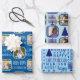 Add this custom gift wrapping sheet assortment with your photos and a design theme of dark navy blue Menorahs and Christmas trees for a one of a kind personalised interfaith Chrismukkah celebration. Wrapping Paper Sheet One is set on a deep blue background with light blue typography text alternating with two of your favourite photos framed in light blue. Gift Wrap Sheet Two has a pastel blue background and a chequerboard style pattern of navy blue trees and menorahs for Christmas and Hanukkah and two more of your photos with rounded corners rimmed in dark blue. Wrapping Paper Sheet Three is a typography design filled with MERRY and HAPPY and CHRISMUKKAH in a mix of dark blue fonts with your child's name nestled into the design, accented with more trees and menorahs. So easy to personalise, this unique Chrismukkah gift wrap assortment was designed with interfaith Christian and Jewish families in mind and will add a custom touch to your holiday festivities, how ever you celebrate.