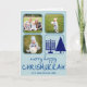Merry Navy Interfaith Cute Handwriting 3 Photo Holiday Card
