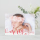 MERRY PHOTO family fun calligraphy overlay red Holiday Card