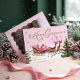 Celebrate the magic of the season with our pink christmas santa reindeer north pole village holiday Christmas card. This magical card showcases our beautifully crafted watercolor scene featuring a retro-style pink Santa Claus in his pink sleigh, gracefully soaring over a charming North Pole village. The vintage-inspired "Merry Christmas" greeting adds a touch of nostalgic elegance. On the reverse side features wavy photo frame to display your family photo. Perfect for sending warm wishes and festive joy, this card captures the whimsical spirit of a pink-themed Christmas. Hand-drawn with love and design by Moodthology Papery.