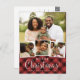 Festive holiday photo card features four of your favorite images arranged in a collage layout. "Merry Christmas" appears beneath in white lettering on a rustic handpainted buffalo plaid background in red and black. Personalize with your names, and add an additional photo and a personal message to the back, along with your return address.