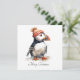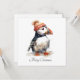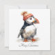 Invite your guests to a uniquely charming Christmas celebration with our "Merry Puffin Christmas" invitation. This adorable design features a delightful watercolor illustration of a puffin, bundled up for winter in a cosy red and white striped beanie topped with a fluffy pompom. The charming seabird stands amidst a light dusting of snow, bringing a touch of whimsical winter cheer to your event. The words "Merry Christmas" are elegantly displayed below the puffin.