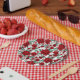 This festive and beautiful pattern is perfect for the Christmas season. It features bright neon red, burgundy red, and sage green poinsettia flowers, ivy leaves, and holly berries on top of a simple white background. It's elegant, modern, artsy, and pretty; the perfect design for wintertime. Stylise with this one-of-a-kind pattern hand-painted by the artist of La Femme, Rachel Matheney.