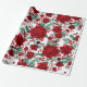 Merry Red Poinsettia Flowers Ivy Leaves Watercolor Wrapping Paper