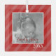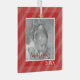 Merry Red Striped Cute Holiday Christmas Photo Ornament. Personalised with a custom name. A trendy cute holiday Christmas gift. A fun and whimsical way to celebrate the holidays.
