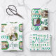 MERRY Script Green On White 4 Photo Christmas Wrapping Paper Sheet