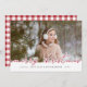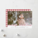 Share holiday greetings with these rustic chic Christmas photo cards featuring your favourite full bleed horizontal or landscape orientated photo. "Merry Christmas" appears as a red text overlay outlined in white, in elegant hand lettered script typography. Personalise with your custom holiday greeting, name(s) and the year along the bottom. Cards reverse to a rustic buffalo check plaid pattern in matching holiday red and white.