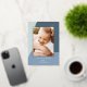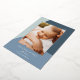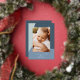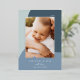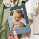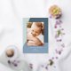 A chic and elegant holiday card design featuring a single vertical or portrait-orientated photo on a background of organic shapes in soft shades of blue spruce, and bordered in luxe silver foil. Personalise with your family name and custom greeting beneath for the perfect finishing touch to these nature-inspired Christmas 2022 photo cards.