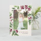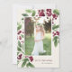 Send holiday greetings to friends and family in chic style with our elegant photo cards. Graceful sprigs of painted watercolor foliage and deep red berries frame your vertical or portrait orientated photo, with your custom greeting (shown with "joy to the world") and your family name(s) tucked into the lower right corner. Cards reverse to reveal a matching winter botanical pattern.