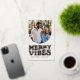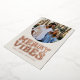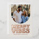 Send this merry vibes with this fun retro Christmas card! Featuring a funky playful "merry vibes" type treatment on the front in rose gold foil, this holiday photo card also features a unique arch photo shape. The back has room for three more photos and more custom text. Make your holiday card unique with this stylish design! Also available in other colours and styles in the collection by Lea Delaveris Design!