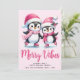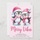 Merry Vibes Ice Skating Penguins Pink Christmas Holiday Card