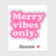 Festive and fun, this retro-style "Merry Vibes Only" sticker is the perfect holiday touch. A seasonal play on "good vibes only" it features a throwback style type and trendy hot pink colours. Makes a great teen or tween stocking stuffer!