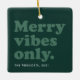 Merry vibes only fun retro green holiday photo ceramic ornament