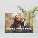 Send fun retro holiday cheer with this one-photo card that features a play on "good vibes only" with a more festive "merry vibes only." The white text sits at the bottom of a single horizontal photo with plenty of room for custom text and names. The back is a fun vivid retro red with a distressed texture.
