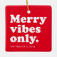 Merry vibes only fun retro red holiday photo ceramic ornament