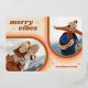 Affordable custom printed holiday photo cards with simple templates for customisation. This modern retro design has space for 2 photos in arched frames with "Merry Vibes" greeting and real gold foil accents. Personalise it with your photos and add your family name and the year. Reverse side has space for additional photos and text. Use the design tools to edit the text, add more photos and create a unique one of a kind Christmas photo card design.