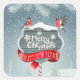 Decorate your home this Christmas with our beautiful Christmas and happy new year square sticker featuring snow clad trees, beautiful birds on wooden sign board and white needles. Falling snow gives it a dazzling effect. Perfect for your Christmas gifts and envelopes