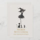 A darkly elegant Merry Witchmas card featuring a tall, slender witch in her black tulle dress with her loyal black cat. Perfect for gothic, witchy, and alternative holiday lovers who prefer their greetings with a touch of moonlight and mischief. Personalize with your name or family greeting.