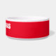 This unique custom pet dog or cat bowl features their name personalised in classic all-caps serif text with a background in red colour. A stylish water and food bowl for your furry family member, available in medium and large sizes.
