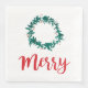 Merry Wreath Berry Red Script Christmas Napkin