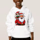 christmas cat santa shoulder design, calico cat holiday art, kawaii festive illustration, cozy winter merch, pet lover christmas gift, zazzle holiday greeting, santa and cat art, merry xmas cat design, whimsical christmas scene