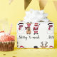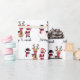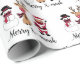 This funny and cute Christmas wrapping paper has a snowman, reindeer and Santa Claus wearing masks. There are buffalo plaid patterns, and lovely red, white, black, and tan colours.