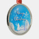 Merry Xmas White House Snow Blue Ornament