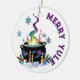 Merry Yule Festive Witches Cauldron Wiccan Holiday Ceramic Tree Decoration