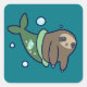 A cute mermaid sloth or mersloth, surrounded by blue bubbles. The mermaid three toed sloth has a green tail with diamond shapes on it. Very silly and adorable.