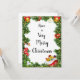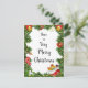 Vibrant colored letters, trees, holly and cancy canes in a cheerful message suitable for a non-religious holiday greeting. I especially liked it on the black background which made the design pop.